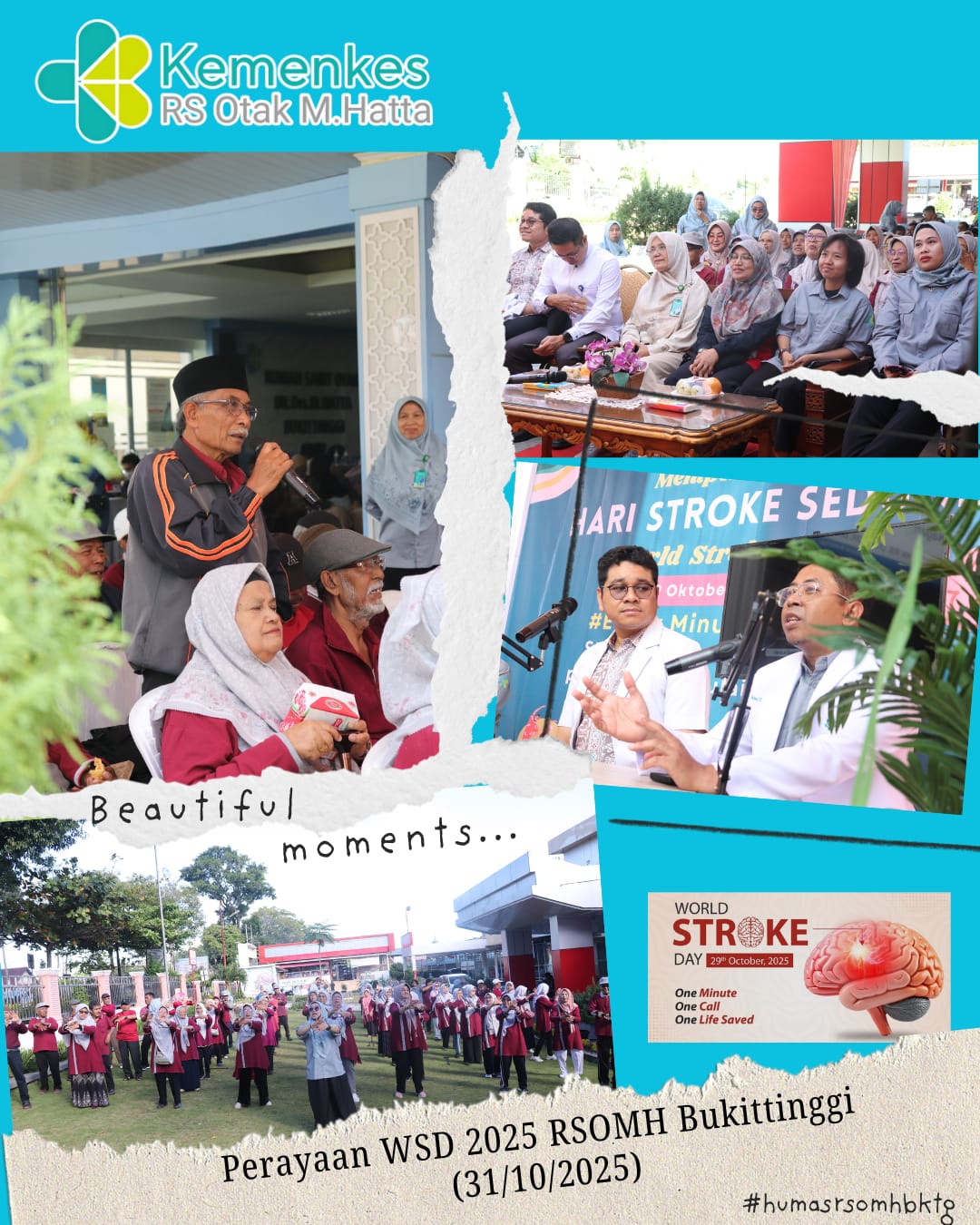 Dalam rangka memperingati Hari Stroke Sedunia (World Stroke Day) tahun 2025, Rumah Sakit Otak Dr. Drs. M. Hatta (RSOMH) Bukittinggi menyelenggarakan serangkaian kegiatan edukatif dan interaktif yang melibatkan pasien, klub stroke, karyawan, serta masyarakat umum. Kegiatan ini mengangkat tema global "Every Minutes Counts”, yang menekankan pentingnya respon cepat terhadap gejala stroke untuk menyelamatkan nyawa..