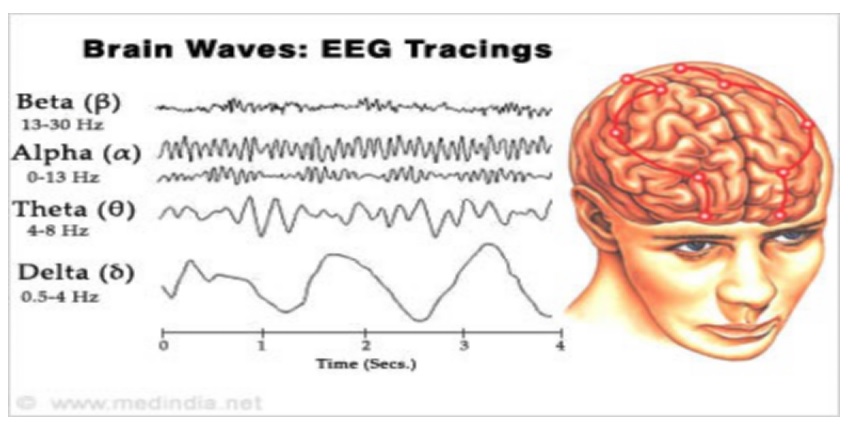 Secara normal aktivitas otak terjadi oleh karena perpindahan sinyal dari satu neuron ke neuron lain. Perpindahan ini terjadi antara akson terminal  suatu neuron dengan dendrit neuron yang lain melalui sinaps. Sinaps merupakan area yang penting untuk perpindahan elektrolit dan sekresi neurotransmitter yang berada di dalam vesikel presinaps. Komposisi elektrolit dan neurotransmitter saling mempengaruhi satu sama lain untuk menjaga keseimbangan gradient ion di dalam dan di luar sel melalui ikatan antara neurotransmitter dengan reseptormya serta keluar masuknya elektrolit melalui kanalnya masing-masing. Aktivitas tersebut akan menyebabkan terjadinya depolarisasi, hiperpolarisasi dan repolarisasi sehingga terjadi potensisal eksitasi dan inhibisi pada sel neuron. Potensisal eksitasi di proyeksikan oleh sel-sel neuron yang berada di kortek yang kemudian di teruskan oleh akson, sementara sel interneuron berfungsi sebagai inhibisi.