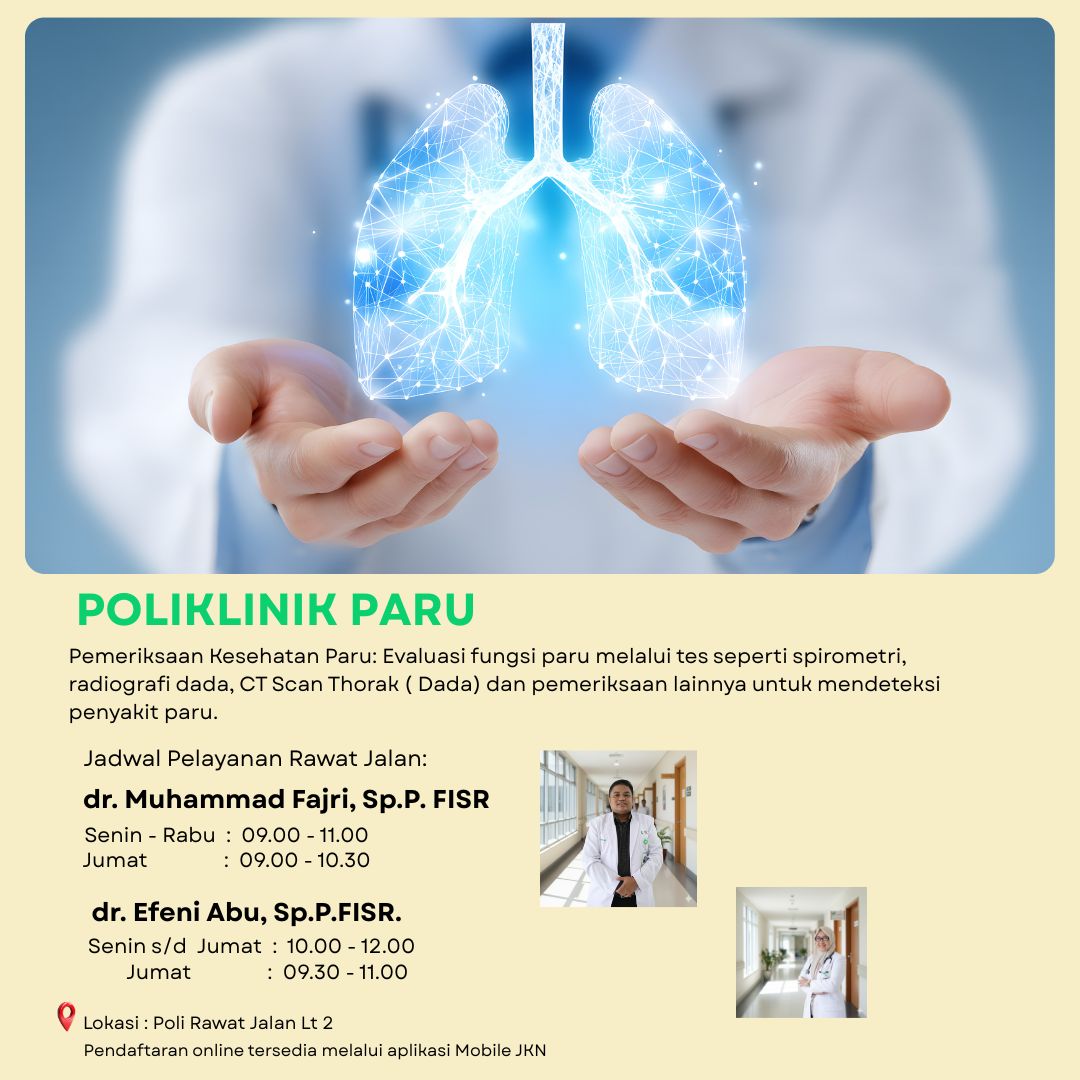 - Perawatan dan Pengobatan: Menyediakan terapi medis untuk penyakit paru, termasuk obat-obatan, terapi inhalasi, dan manajemen oksigen jika diperlukan.