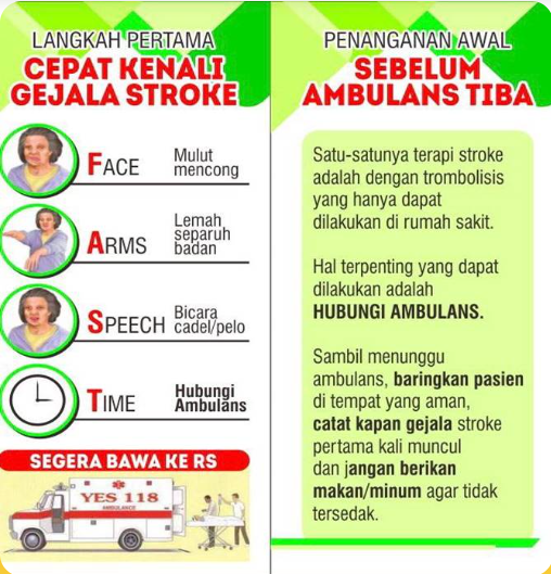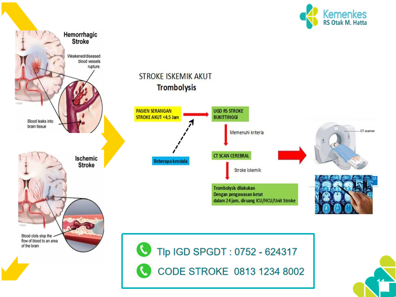 Pasien Stroke Iskemik ( Stroke Penyumbatan) dengan onset kurang 4,5 jam dapat dilakukan trombolisis agar mengurangi komplikasi kecacatan pada pasien. Hal ini dilakukan dengan aktivasi sistem Code Stroke Rumah Sakit.